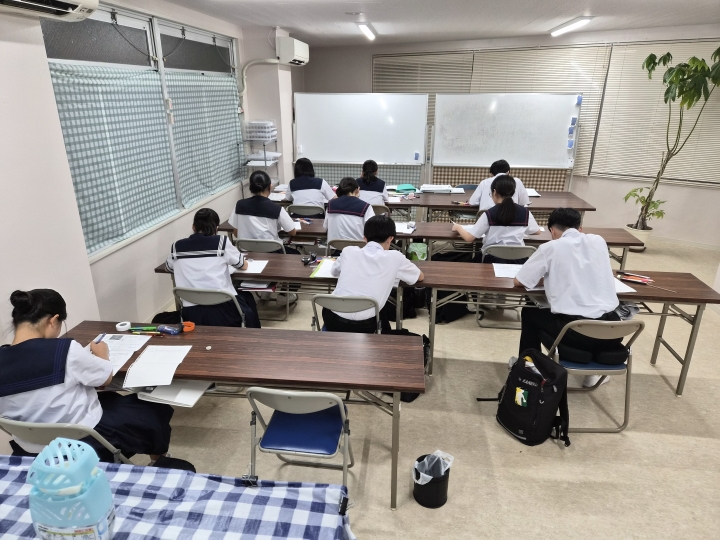 ございます。 1年生も混じって、高校入試問題に取り組んでいます。