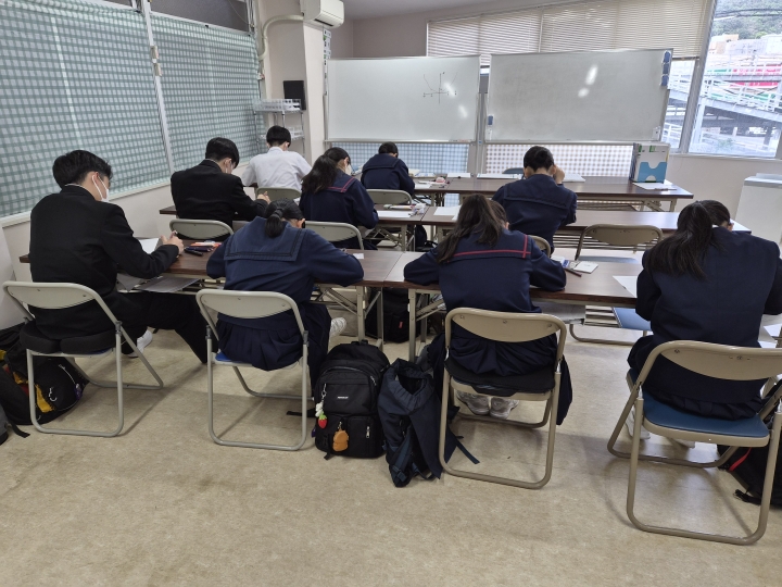 さて、明日出発する鹿児島学区1人と大島高校組は本日がいよいよ最終日です(新高1講座申込者は最後ではないけども…)。 気を抜かず、怪我の無いよう、登校してください。 2年生以下も、中学生としては、3年生とともに学ぶ最後の日です。 都合のつく生徒は、参加して構いません( `ー´)ノ